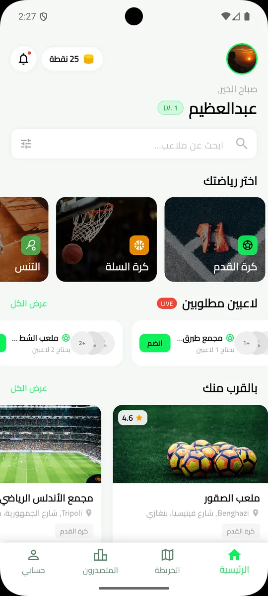 اكتشف واحجز أفضل الملاعب الرياضية بالقرب منك. كرة قدم، كرة سلة، تنس والمزيد — كل شيء في تطبيق واحد.